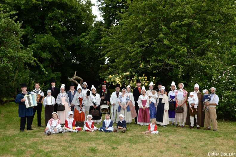 | Les Pierrots de la Vallee (Normandy, France) Created in 1987 in Garennes Sur Eure, a small village located on the border of Yvelines and Eure et Loir, the Folkloric group "Les Pierrots de la Vallée" aims to keep Norman popular traditions alive. Due to its proximity to the capital, the Eure Valley was influenced by Parisian fashion from an early age. "Les Pierrots de la Vallée" is the only group in Normandy to wear the "déshabillé" (women's cotton costume). The headdress called "Pierrot" gave the group its name. As for the men, they wear frock coats and top hats. Made up of a majority of young people, the dances practiced throughout Normandy take on a lively rhythm which makes them more cheerful and more enjoyable for both the dancers and the spectators. Apart from sewing for the maintenance and reshaping of the 7 costumes, the group makes a point of passing on the learning of bobbin lace, the jewel of the town of Bayeux. The primary goal of the association being to make its folklore known as widely as possible, what could be better than exchanges? This is how the Garennes Sur Eure International Folklore Festival was born in 1991 and has been held every two years ever since. Dunedin Dancers attended this festival in July 2024! |